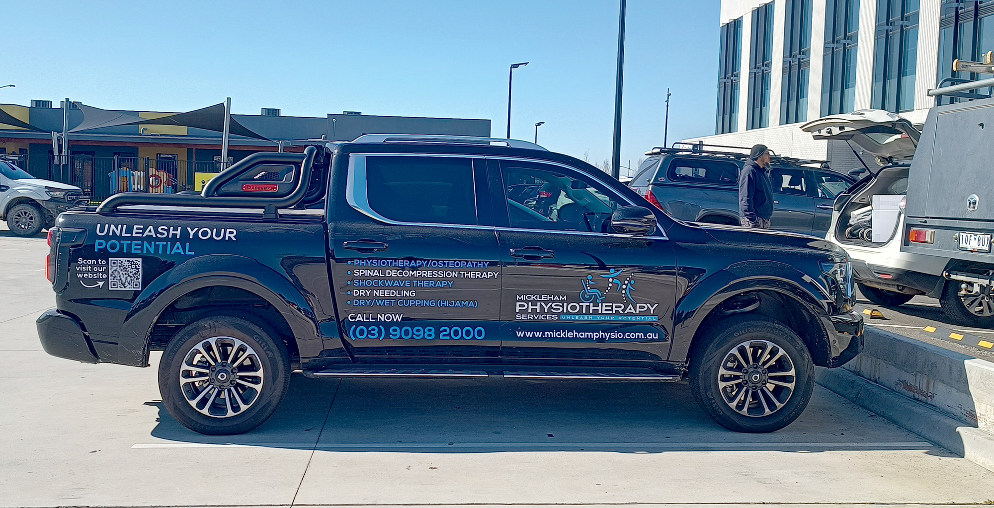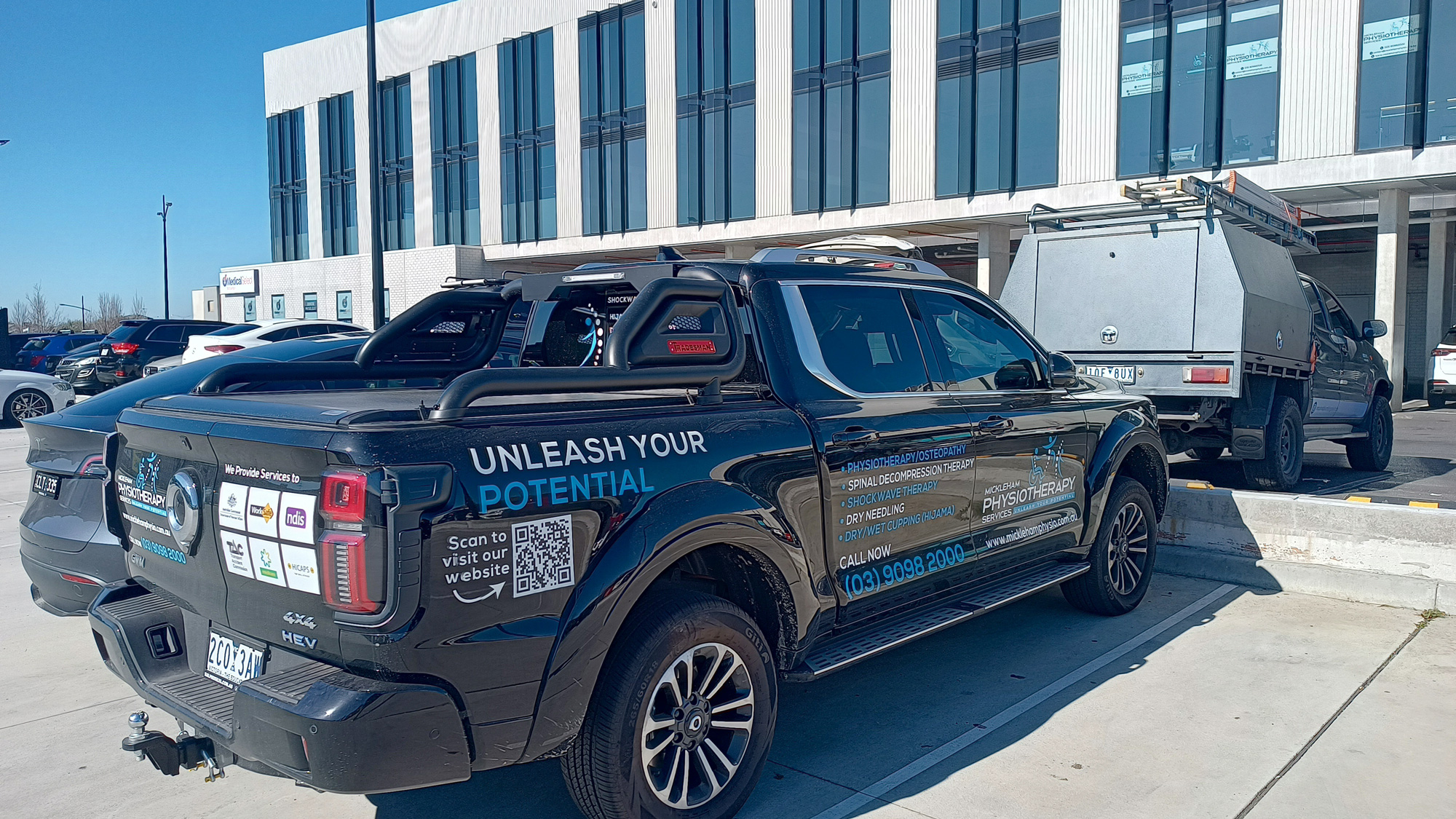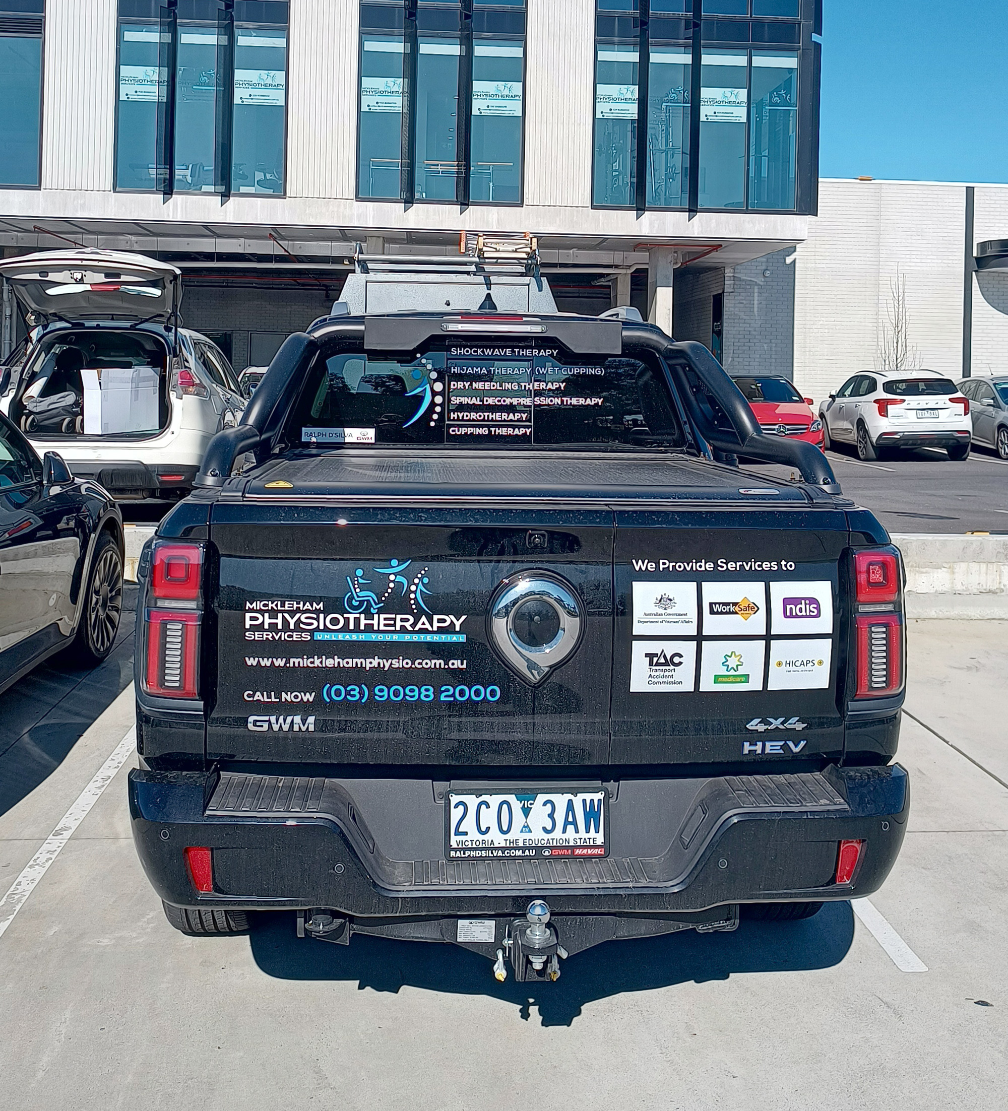 Vehicle branding, extending the clinic’s identity beyond the physical location and increasing brand visibility in the community