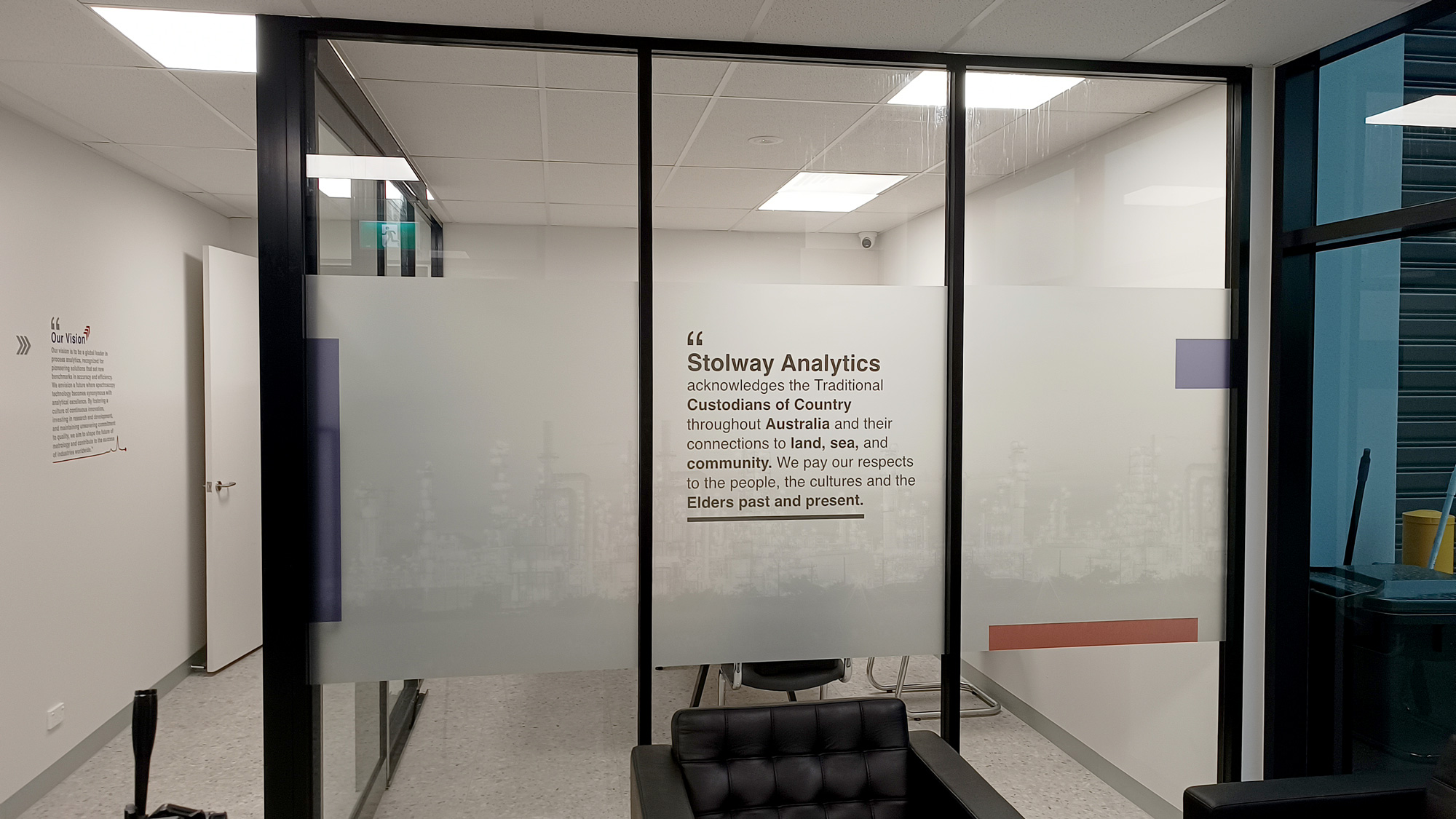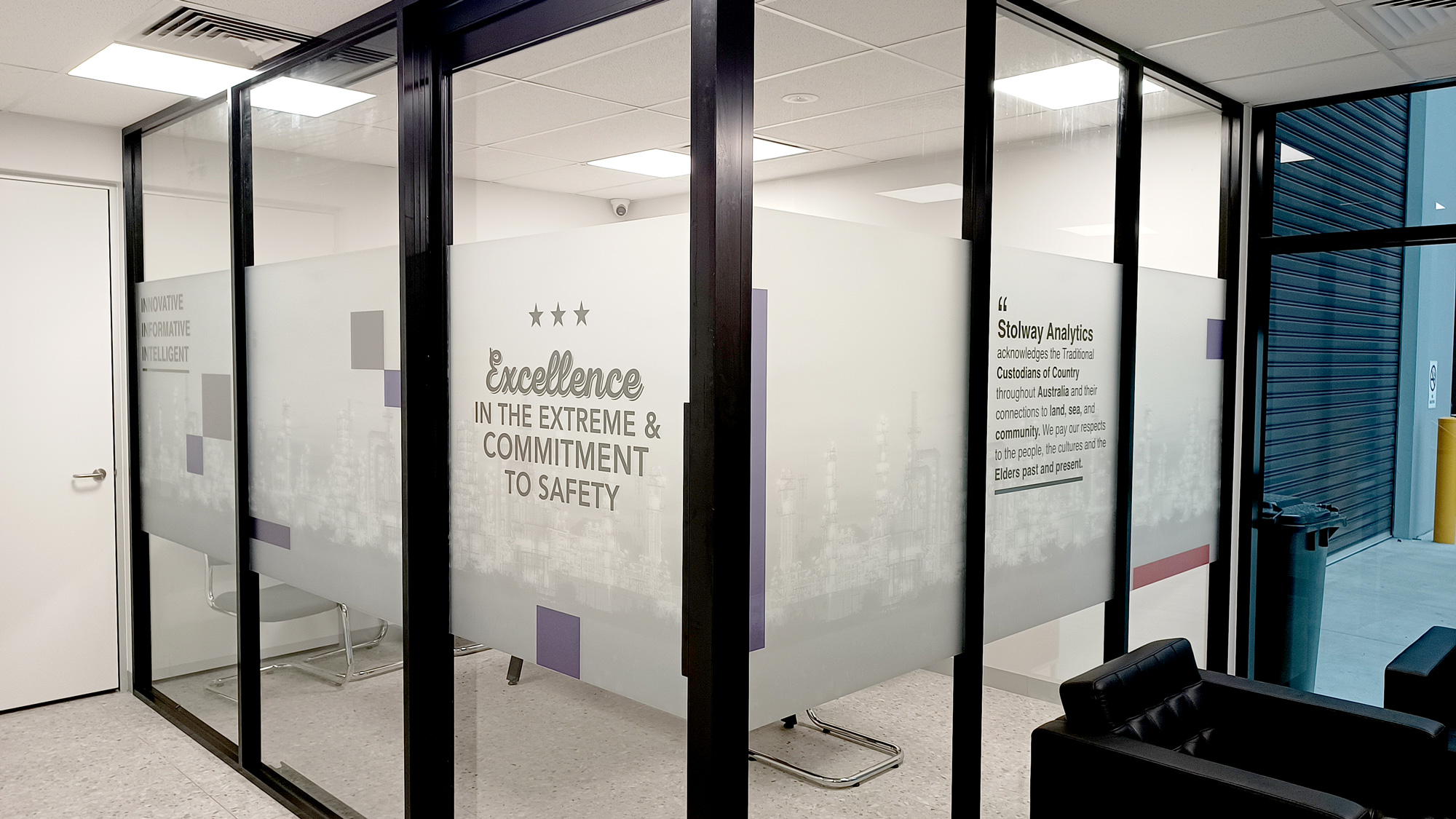 Sooper Signs partnered with Stolway Analytics to create a complete brand and visual identity experience for their new premises. Our goal was to make their workplace look professional, modern, and aligned with their brand values while ensuring every element served a purpose—whether it was branding, wayfinding, privacy, or aesthetics.